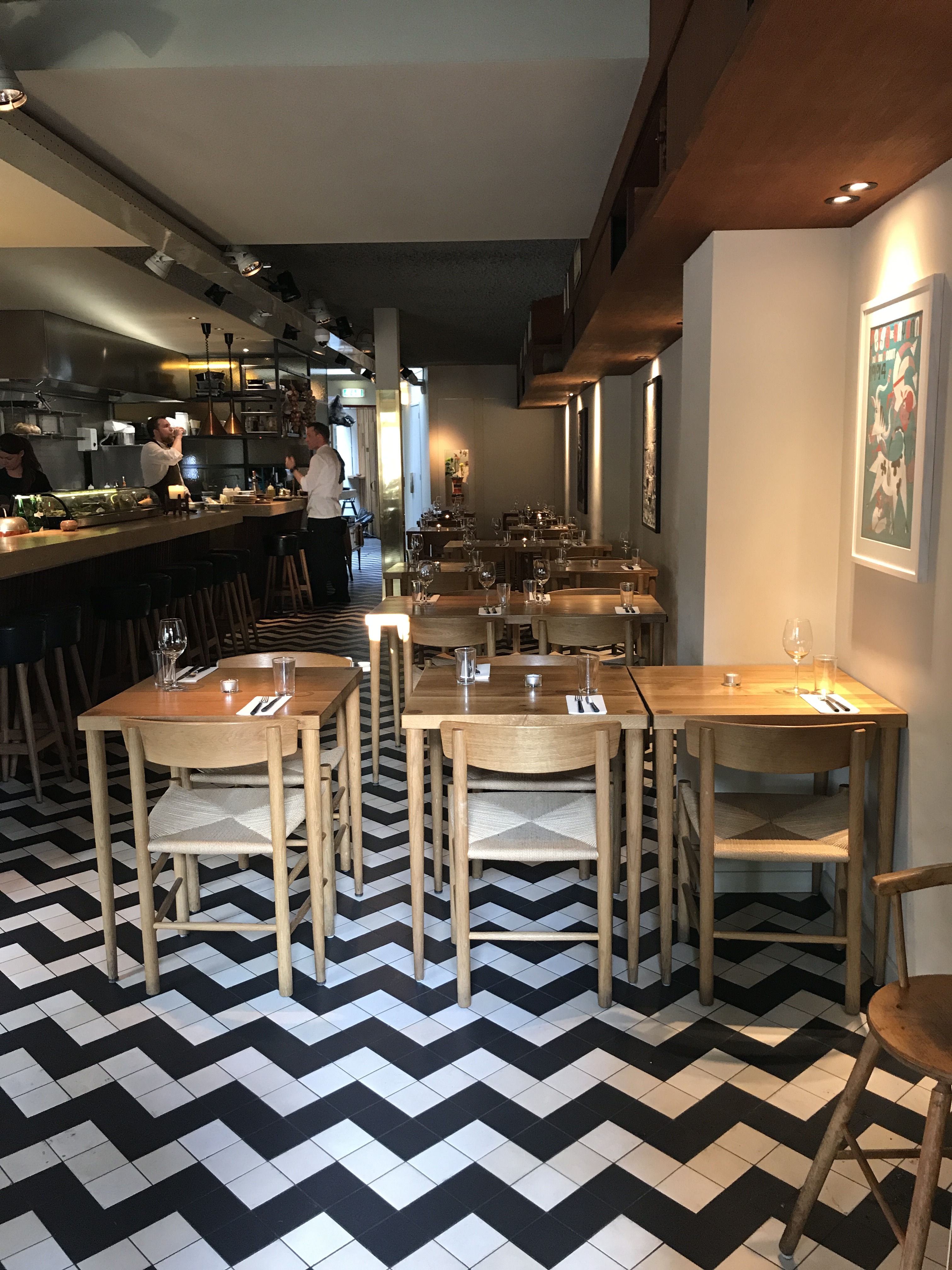 - George Amsterdam – Amsterdammers’ favourite no-chain, chain. In their words “a French brasserie in New York….In Amsterdam’. Think metro tiles, wooden chairs and white tablecloths galore along with Eggs, croques, club sarnies, steak tartare, oysters and lobster rolls. Their ‘tuna pizza’ essentially tuna carpaccio served on a paper thin bread crisp is the stuff of legend.