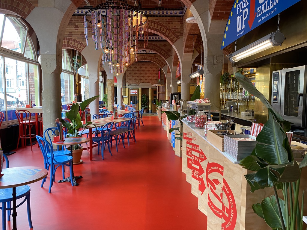 As of July 2020 (yes mid-Corona!) the brand new Chocolate Bar opened upstairs in the main Beurs van Berlage building. And its nuts (chocolate nuts obviously!)
